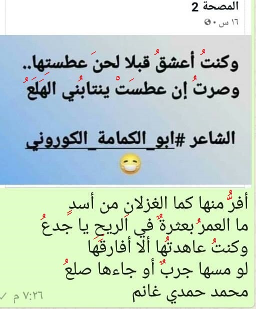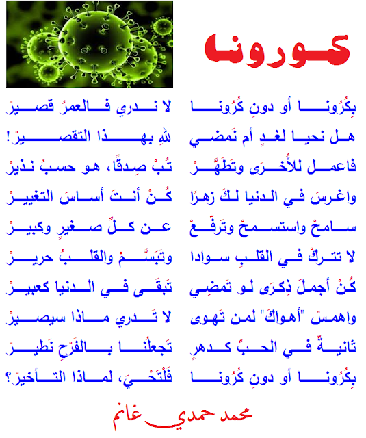 وقال أيضا في قصيدة فايروس أوهان: